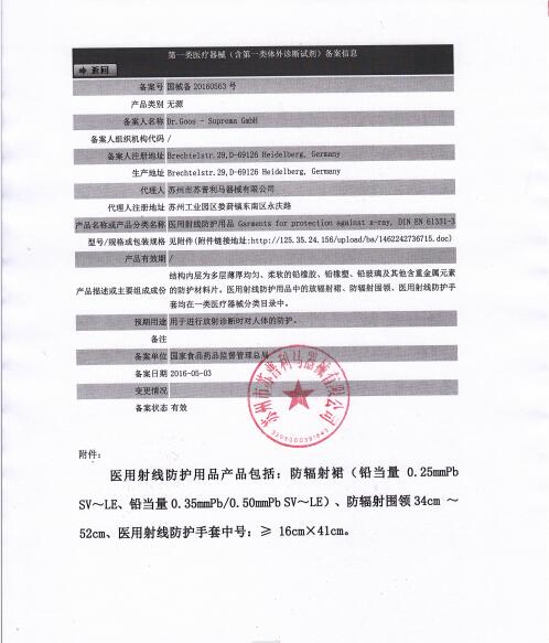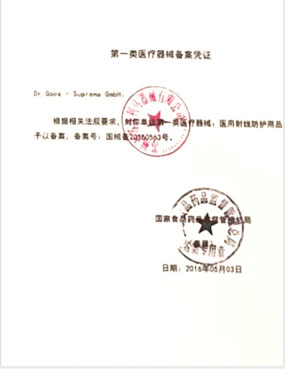 蘇州市蘇普利馬器械有限公司是專業從事醫用X射線防護系列用品、裝置、代理德國Dr.Goos-Suprema Gmbh.顧斯博士-蘇普利馬有限公司生產的原裝進口鉛衣及醫用觀片燈的生產銷售企業.生產的X射線防護圍裙均來自美國SHIELDING公司的最新型超薄型防護材料,,具有防護性能可靠、穿戴舒適、輕便柔軟、操作自如等諸多優點.產品均通過相關X射線檢測機構的檢測,達到產品標準的要求.X射線醫用膠片觀察燈。是采用全LFD燈光技術。具有重量輕,光源均勻,亮度高,無頻閃,不變型,使用壽命長等特點。均取得了生產許可及醫查看更多>>